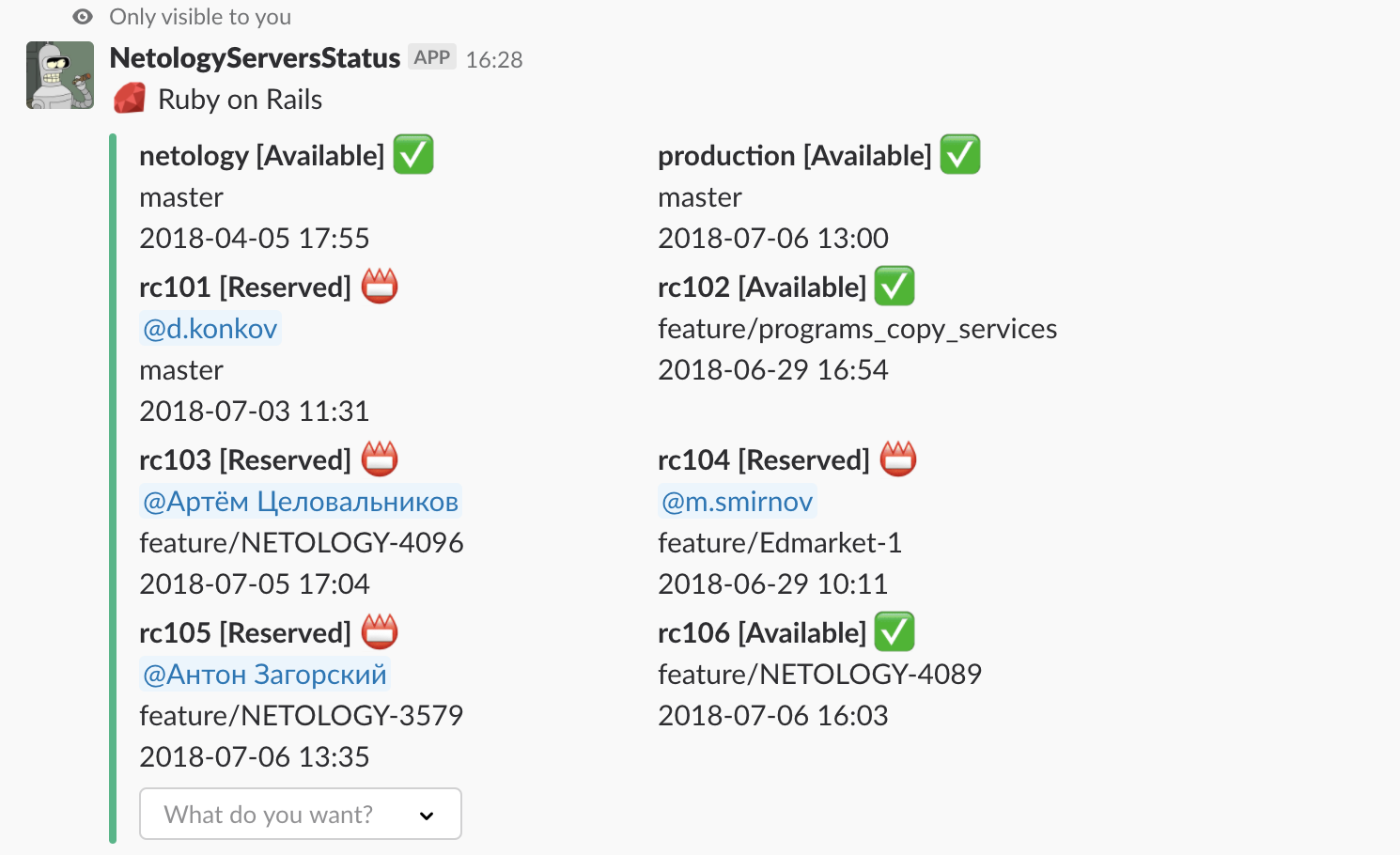 * В Фоксфорде сейчас более совершенная система деплоя, которая не предполагает ручного бронирования